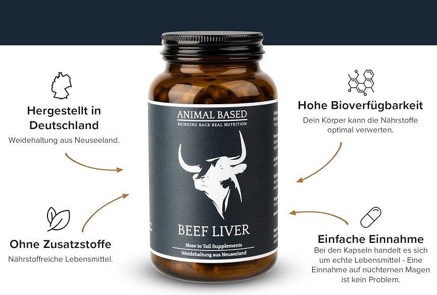 ![]() | https://amzn.to/3Ys2sUQ | Verkapselte, gefriergetrocknete Leber von neuseeländischen, grasgefütterten Weiderindern | Strong, strong buy! |