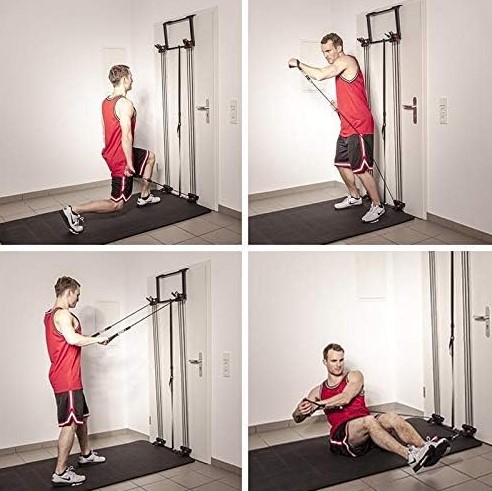 ![]() | https://amzn.to/3ynO2ui | Ob Preis, Funktion, Stabilität … für mich das Beste, was der Markt hergibt. Perfekt für zusätzliche Einheiten daheim und wenn die Zeit für die Fahrt ins Studio knapp ist. Ich nutze ihn vor allem für die Arme, Schultern und den Rücken. | Bei der Montage an einer Tür war es wegen eines geringen Abstands zwischen Türblatt und -zarge in meinem Fall sinnvoll, eine kleine Aussparung in das Türblatt zu sägen. Kann auch mit Kanthölzern oben/unten an einer Wand befestigt werden. |