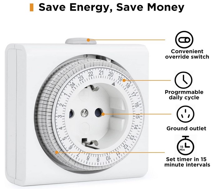 ![]() | https://amzn.to/4fzYb8a | eine leicht zu bedienende, analoge, mechanische Zeitschaltuhr | Hiermit können vorsichtige Personen etwa Nachts den Einsatz von Erdungsprodukten langsam hochdosieren |